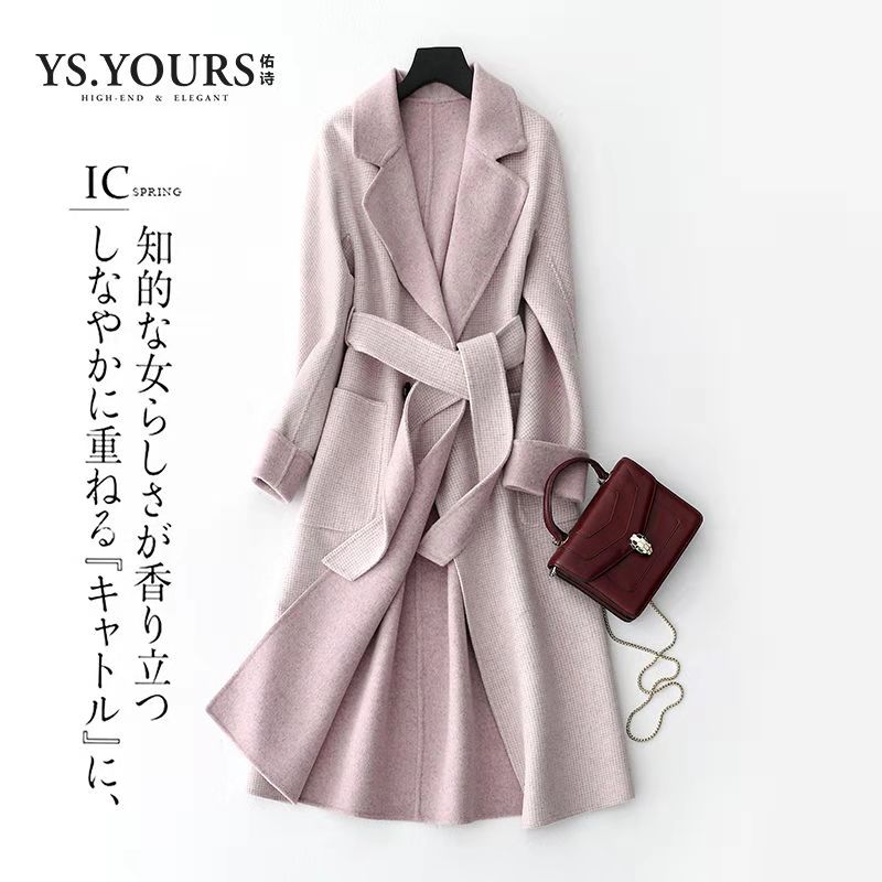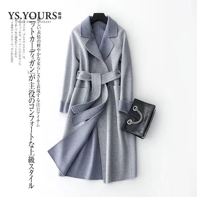 T 佑诗双面羊毛大衣女中长款2018新款冬无羊绒格子赫本风毛呢外套女