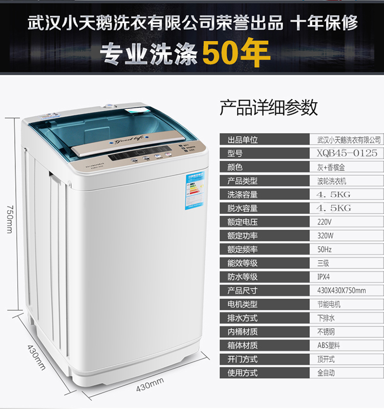 武汉小天鹅洗衣有限公司“十佳7.6kg全自动洗衣机