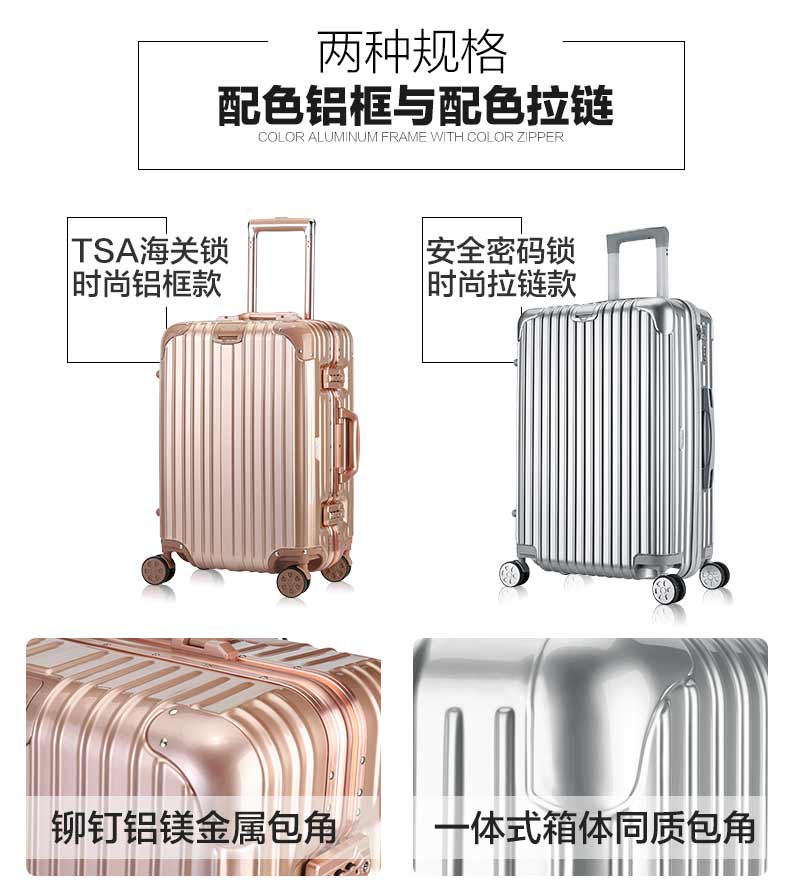 全配色铝框行李箱女拉杆箱万向轮密码箱