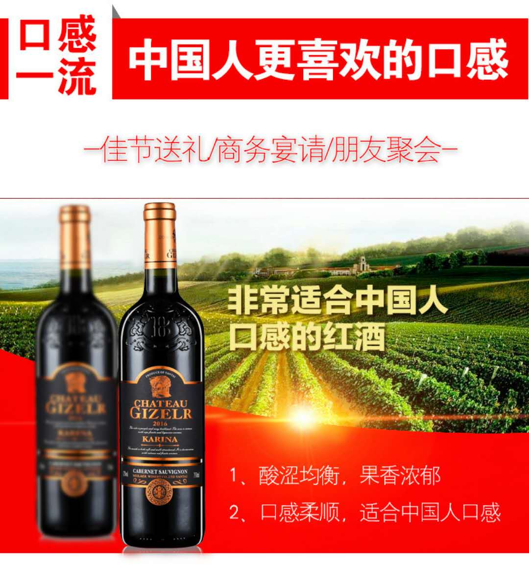 法国波尔多卡琳娜干红葡萄酒750ml2瓶