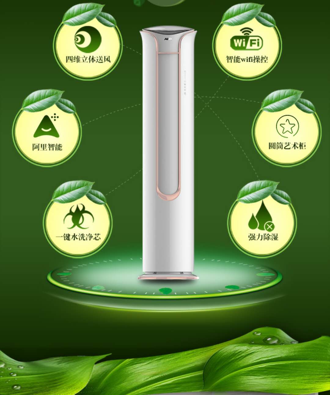 【全国联保】奥克斯KFR-51LW/R1TYK19+2立式2匹智能空调柜机冷暖