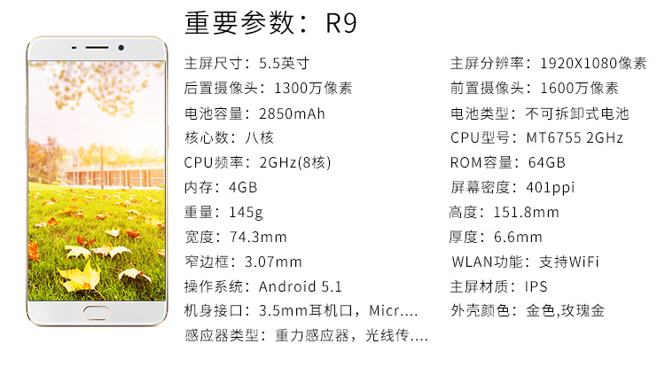 oppo r9 oppo手机 全网通4G超薄机身64G